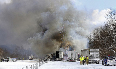 برخورد دست کم 150 خودرو با یکدیگر در یک تصادف زنجیرهای در ایالت میشیگان امریکا یک کشته و دهها زخمی برجای گذاشت. پلیس میشیگان اعلام کرد که تنها قربانی این حادثه راننده کامیونی بود که بار کامیونش مواد محترقه و وسایل آتش بازی بوده که بر اثر تصادف منفجر شدند.شبکه خبری سی ان ان در گزارشی اعلام کرد که طبق اظهارات ماموران پلیس ایالت میشیگان، علت بروز این حادثه لغزندگی زمین بوده است.