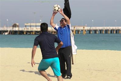 تصاویر/ والیبال ساحلی قلعه نویی با توپ فوتبال