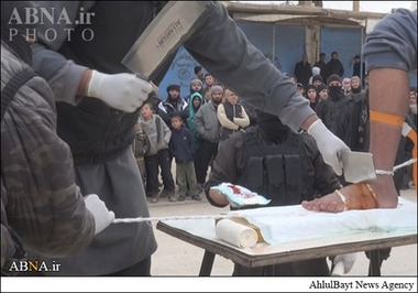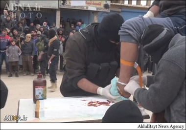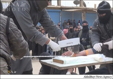 گروه تروریستی داعش که اینگونه اعمال هولناک را برای ایجاد رعب و وحشت و محکمتر مناطق تحت سیطره خود انجام میدهد درحالی شهروندان سوری را به اتهام سرقت اعدام و یا محکوم به قطع عضو میکند که عناصر خود این گروه به دزدیدن پول مردم و چپاول اموال عمومی و خصوصی در مناطق تحت سیطره خود شهره شدهاند. جلادان تکفیری داعش روز گذشته در میدان اعدام حسکه پای دو جوان سوری را قطع کردند.