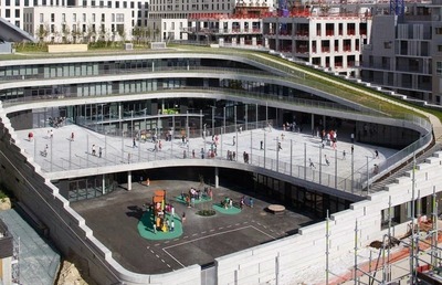 اخیرا مدرسه ای ابتدایی با نام "بولون بیلانکورت" در یکی از محله های شهر پاریس فرانسه افتتاح شده که در آن از فضای سبز بر روی سقف این مدرسه به منظور ترویج این موضوع با معماری زیبایی استفاده شده است.