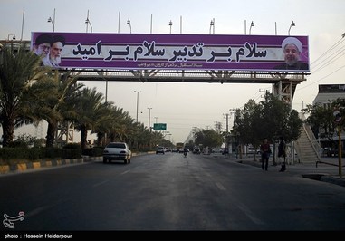 تصاویر/ بیلبوردباران بوشهر یک روز قبل از سفر روحانی!