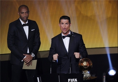 ستاره پرتغالی رئال مادرید برای سومین بار توپ طلای 2014 را بدست آورد و این جایزه را از دستان یک بارسایی دریافت کرد. مراسم توپ طلای فوتبال 2014 جهان شب گذشته در زوریخ سوئیس برگزار شد و کریستیانو رونالدو موفق شد برای سومین بار توپ طلای فوتبال جهان را بدست آورد. نکته مهم در این مراسم اهدای توپ طلا به یک رئالی توسط مهاجم سابق بارسلونا تیری هانری بود.