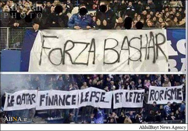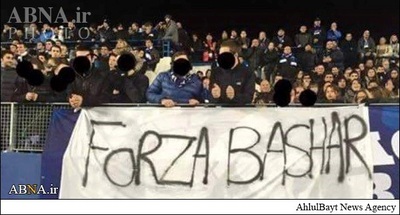 در قسمتی دیگر تماشاگران بنری در دست داشتند که بر روی آن نوشته شده: FORZA BASHAR : "قدرت با بشار است."