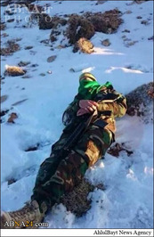 در تصاویر زیر عملیات جهادی رزمندگان حزب‌الله در نبرد با تروریست‌های تکفیری را مشاهده می‌کنید. در یکی از این تصاویر؛ دست یکی از مدافعان حریم آل‌الله، در سرد‌ترین منطقه درگیری با تروریست‌ها در ‫‏سوریه‬ یخ زده است.