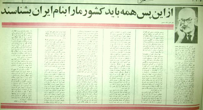 روزنامه اطلاعات است که بعد از رسمی شدن عنوان ایران، دلایل و توجیه