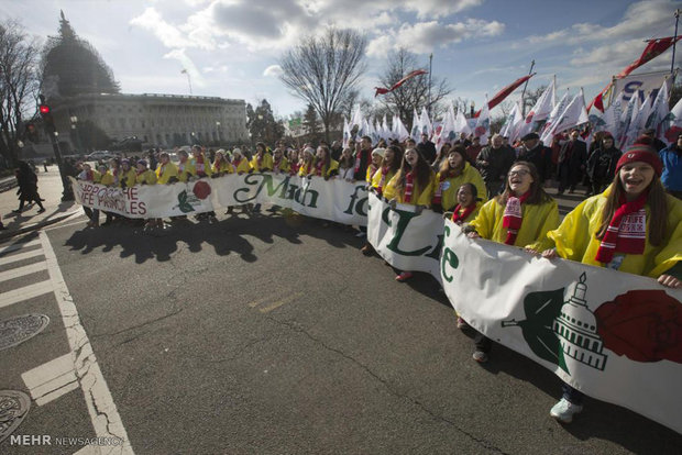 هزاران نفر از مخالفان قانونی بودن سقط جنین، در مقابل ساختمان دیوان عالی آمریکا دست به تظاهرات زدند.