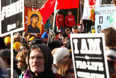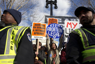 هزاران نفر از مخالفان قانونی بودن سقط جنین، در مقابل ساختمان دیوان عالی آمریکا دست به تظاهرات زدند.