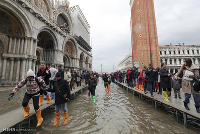 شهر ونیز ایتالیا، این روزها مطابق روال همه ساله، شاهد بالا آمدن فصلی سطح آب است. گردشگران اغلب با مشاهده این صحنه غیرمنتظره متعجب می شوند، اما این پدیده برای ساکنان شهر به یک امر عادی بدل شده است.