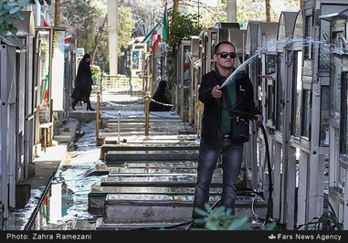 مراسم غبار روبی مزار شهدا بعدازظهر امروز پنجشنبه با حضور مردم در بهشت زهرا برگزار شد.
