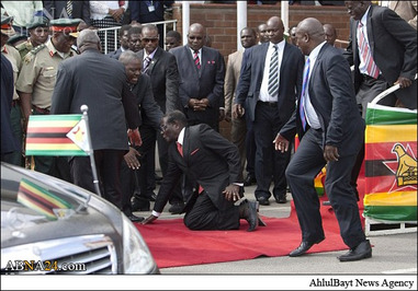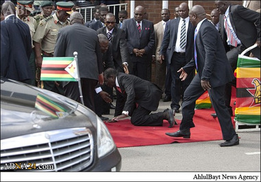 شاهدان عینی گفتند محافظان موگابه بلافاصله وی را از زمین بلند کرده و داخل خودرو بردند.