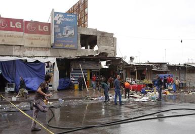 به گزارش رویترز، به گفته مقامات امنیتی بر اثر انفجار دو بمب در شرق بغداد دست کم 23 تن کشته و 50 تن دیگر زخمی شدند. اولین انفجار در محله شیعیه نشینی در بغداد رخ داده است و انفجار دوم در بازار شلوغ منطقه شورجه اتفاق افتاده است.در انفجاراول یک بمب گذار انتحاری با بستن کمربند انتحاری در داخل یک رستوران در محله ای شیعه نشین خود را منفجر کرد و 12 تن کشته شدند. انفجار دوم در بازاری شلوغ در منطقه شورجه منجر به کشته شدن 10 تن شد. عکس های رویترز از این انفجارهای خونین را در زیر می بینید.