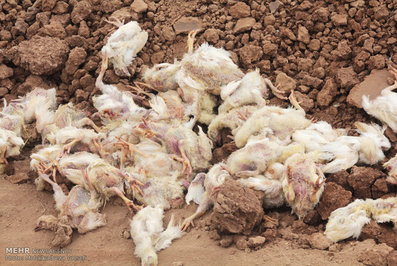 دراولین ساعات بامداد شنبه بیش از ۱۲۰ هزار قطعه مرغ در ۴ مرغداری شهرستان تاكستان و قزوين ظرف چند ساعت تلف شدند.