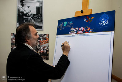 مراسم افتتاح نمایشگاه پیامبر مهربانی و رونمایی از کمپین هنرمندان در دفاع از ساحت پیامبر (ص) عصر امروز یکشنبه در خانه هنرمندان ایران برگزار شد.