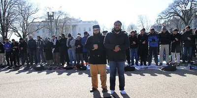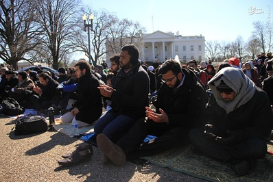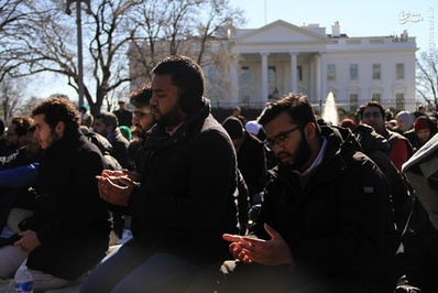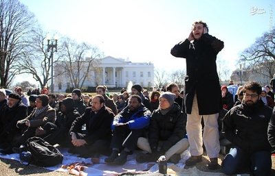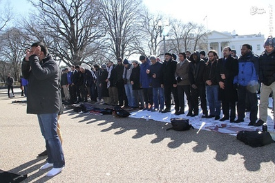 تصاویر/ اقامه نماز مسلمانان مقابل کاخ سفید