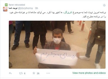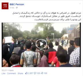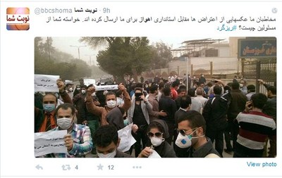 بر اساس این گزارش به دنبال تجمع تعدادی از مردم در اعتراض به عدم پیگیری معضل گرد و غبار در استان خوزستان، شبکه "بی بی سی فارسی" با تغییر موضوع برنامه "نوبت شما" و رپورتاژ خبری ویژه برای این مساله، تلاش کرد تا با دعوت مردم به برگزاری یک تجمع دیگر، بتواند اهداف خاص مورد نظر خود را اجرایی کند.