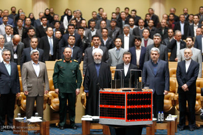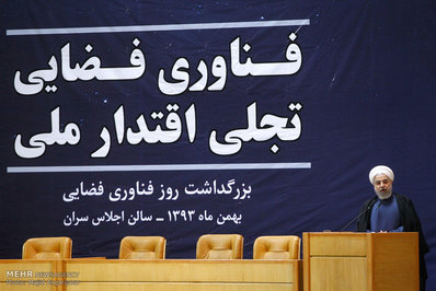 مراسم بزرگداشت روز ملی فناوری فضایی صبح امروز سه شنبه با حضور حجت الاسلام حسن روحانی رئیس جمهور در سالن اجلاس سران برگزار شد.