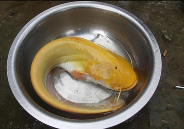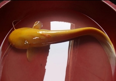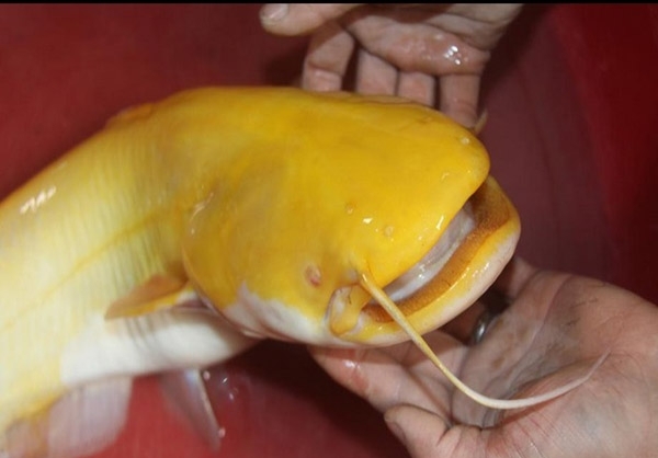 در اینجا تصاویری از یک نوع گربه ماهی را مشاهده میکنید که رنگ آن طلایی بوده و بسیار نادر بوده است که در چین توسط ماهیگیران صید شده است.جالب است بدانید که دلیل نامگذاری گربه ماهیها به دلیل داشتن سبیل در اطراف دهانشان و شباهت آن به گربه بوده است.