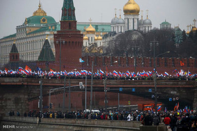 روز یکشنبه ده ها هزار نفر ازمخالفان ولادیمیر پوتین،رئیس جمهوری روسیه دراعتراض به مرگ بوریس نمتسوف منتقد سیاست های کرملین که هنگام بازگشت به منزلش،هدف تیراندازی قرار گرفت وکشته شد دست به تظاهرات زدند.