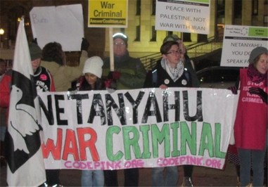 صراط: تعدادی از معترضان آمریکایی با تجمع مقابل ساختمان آیپک مخالفت خود را با سخنرانی نخستوزیر رژیم صهیونیستی در این محل و همچنین کنگره نشان دادند.