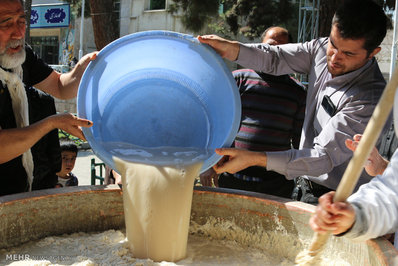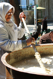 آیین سنتی سمنو پزان به مناسبت ایام فاطمیه روز یکشنبه در فرهنگسرای خیام برگزار شد.