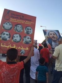 تظاهرکنندگان خشمگین با سردادن شعار، خواهان آزادی زندانیان سیاسی و زندانیان اندیشه در بحرین و در صدر آنها چهره های سرشناس مخالف شدند که به خاطر بیان مسالمت آمیز دیدگاههای خود به زندان افتاده اند.