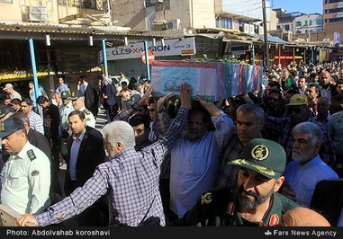 مراسم تشییع دو شهید گمنام هشت سال دفاع مقدس صبح امروز پنج شنبه با حضور گسترده مردم در اهواز برگزار شد.