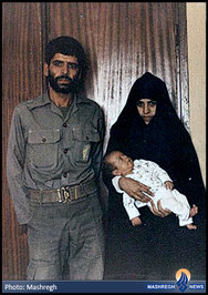 صراط: در این تصویر، «سردار کریمی» و همسر گرامی شان، سرکار حاجیه خانم «زهرا منصف» که «داوود» را در آغوش دارد دیده می شوند.