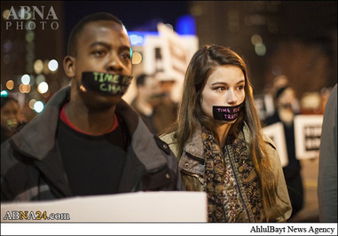 دهها دختر و پسر آمریکایی شب گذشته در اعتراض به نژادپرستی پلیس این کشور در خیابان‌های شهر سنت لوئیس در ایالت میسوری راهپیمایی کردند. معترضان در این اقدام نمادین بر روی دهان خود چسب زده‌ بودند و پلاکاردهایی در حمایت از سیاه‌پوستان در دست داشتند.