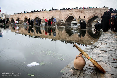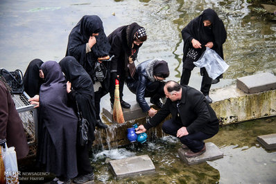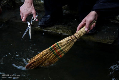 همه ساله دختران و بانوان اردبیلی با نیت برآورده شدن حاجات خود روز پس از چهارشنبه سوری با در دست داشتن قیچی و جارو و کوزه سفالی در محل هفت چشمه حاضر می شوند و به طور نمادین آب را قیچی و جارو می کنند.