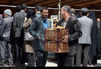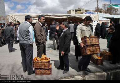 میوه نوروزی در جایگاههای از پیش تعیین شده در اختیار مردم قرار می گیرد و با نزدیک شدن به سال نو صف های طولانی جهت خرید میوه شب عید ایجاد می شود.