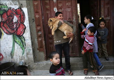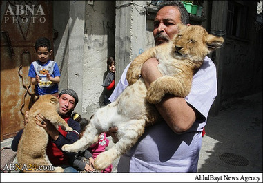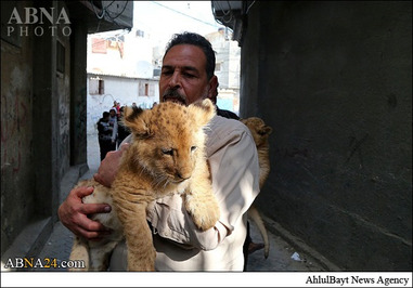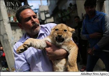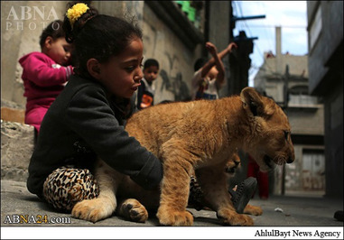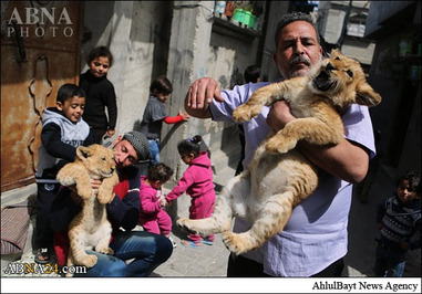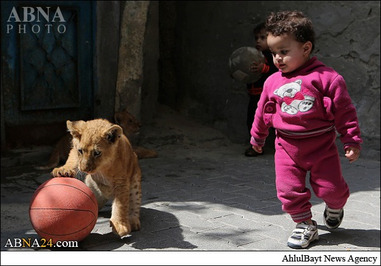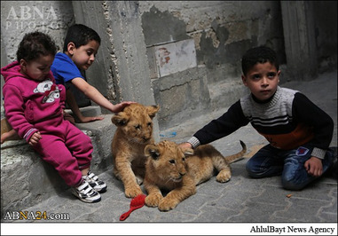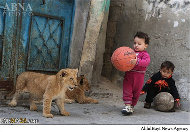 تصاویر/ بازی کودکان غزه با تولههای شیر!
