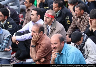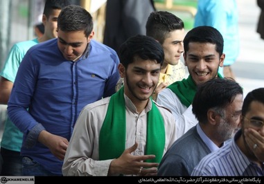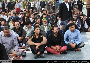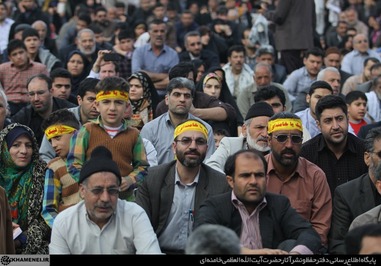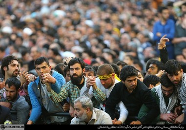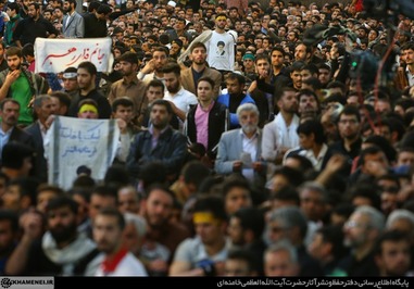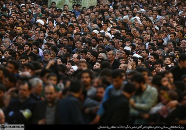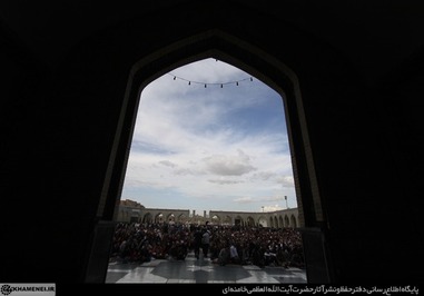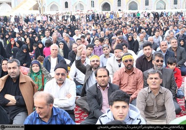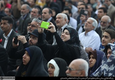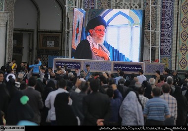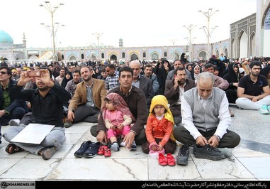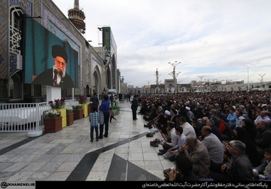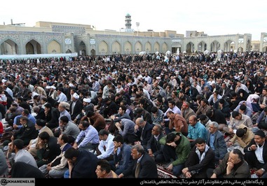تصاویری که مشاهده میکنید بخشی از حضور زائران و مجاوران در صحنهای حرم مطهر رضوی در هنگام سخنرانی رهبر انقلاب است.