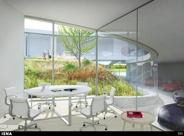 این ساختمان با مساحت 750 متر مربع، شکلی حلقوی دارد که به عنوان مسیر حرکت خودرو عمل کرده و در نهایت، نقش نمایشگاه یا گاراژ خصوصی را درون خانه بازی میکند.