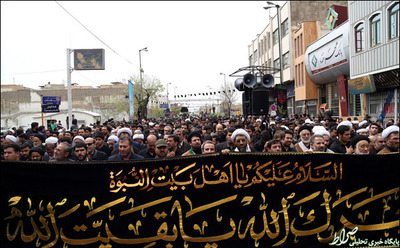 مراسم عزاداری و پیاده روی آیت الله العظمی وحید خراسانی از خیابان شهدای قم آغاز شد و همراه با مداحی مداحان اهل بیت عصمت و طهارت در مسیر خیابان ارم و حرم مطهر حضرت معصومه(س) ادامه یافت.