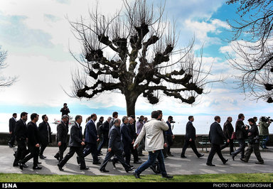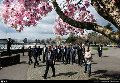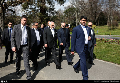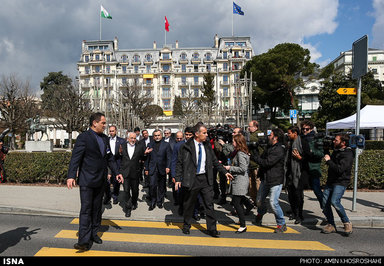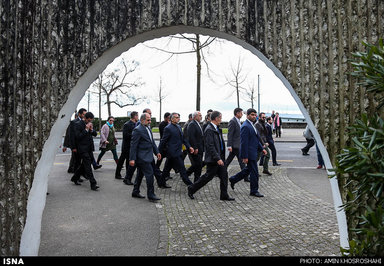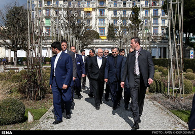 پیادهروی ظریف بعد از اتمام دور اول مذاکرات ایران و آمریکا در روز دوم - لوزان ۲