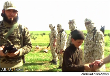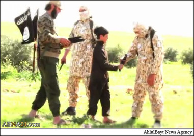 سپس یکی از کودکان داعش چاقوی ذبح را به