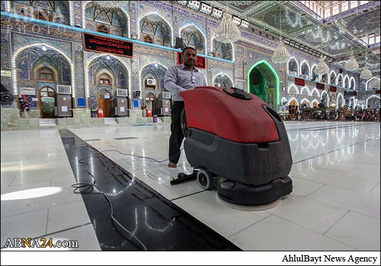 تصاویر/ غبارروبی حرم امام حسین(ع)