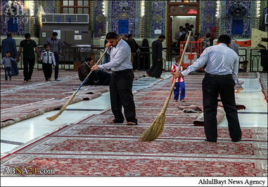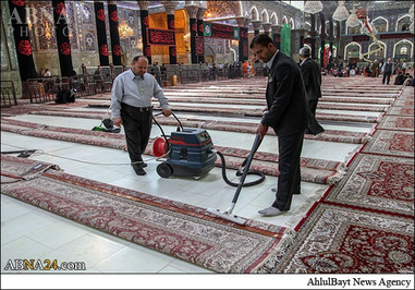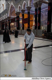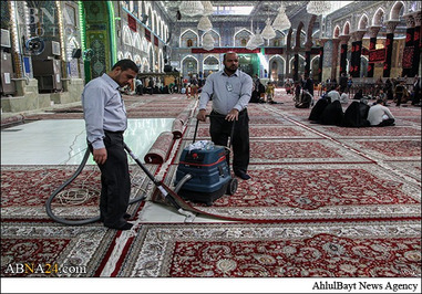 خادمان افتخاری حرم مطهر حضرت اباعبدالله الحسین(ع) روز گذشته صحن و سرای حرم مطهر را غباروبی کردند.