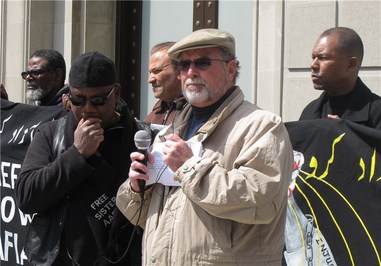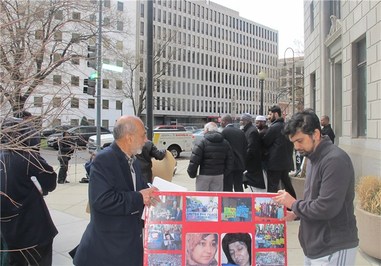 این تجمع به دعوت سازمان صلح از طریق عدالت در مقابل زندانهای فدرال آمریکا برگزار شد.