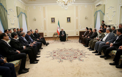 رییس جمهوری در ادامه با اشاره به مذاکرات اخیر در لوزان و همچنین حیطه اختیارات دولت در فعالیتهای هستهای و مذاکرات ادامه داد: به لحاظ اهمیت فراوان این مسأله همواره از نظرات دیگر مسئولین در قوای مقننه و قضائیه و سایر نهادها استفاده کردیم و ضمن بهرهمند بودن از حمایتهای بیدریغ و مستمر مردم، هدایتهای مقام معظم رهبری نیز، همچون چراغ راه برای پیشبرد مذاکرات بود.