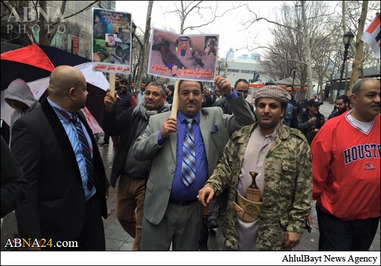 یمنیهای مقیم آمریکا در اعتراض به جنگ علیه یمن در نیویورک تظاهرات کردند و ضمن محکوم کردن حمله رژیم سعودی به خاک یمن با سردادن شعارهایی بر وحدت یمن و ملت این کشور تاکید کردند.