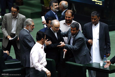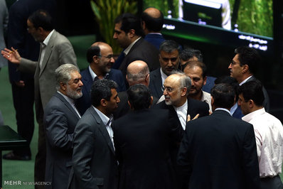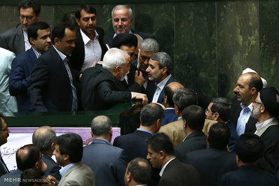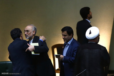 محمدجوادظریف وزیرامورخارجه و علی اکبر صالحی رئیس سازمان انرژی اتمی صبح امروز سه شنبه در جمع نمایندگان مجلس شورای اسلامی به ایراد سخنرانی پرداختند.