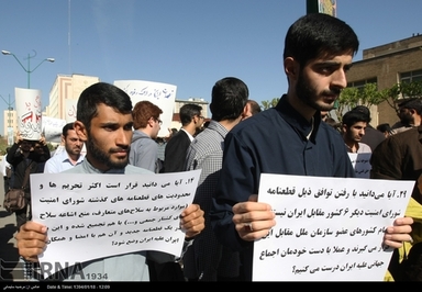 تصاویر/ تجمع علیه تفاهم لوزان مقابل مجلس