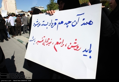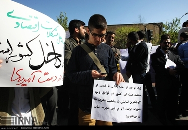 جمعی از دانشجویان دانشگاههای تهران همزمان با حضور محمد جواد ظریف در جلسه غیر علنی امروز مجلس جهت توضیح در خصوص جزییات بیانیه سوئیس و پاسخ به سوالات و ابهامات نمایندگان در این رابطه مقابل ساختمان بهارستان تجمع کردند و دغدغهها و انتقاداتشان را در قالب 30 سوال از وزیر منتشر کردند. این دانشجویان که از تشکلهای انجمن اسلامی، بسیج، جامعه اسلامی و انجمن اسلامی دانشجویان مستقل هستند با در دست داشتن پلاکاردهایی انتقادشان را به مفاد بیانیه لوزان مطرح کردند.