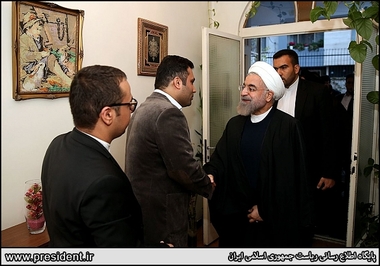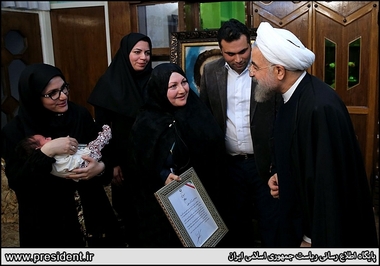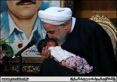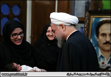 دکتر روحانی در حاشیه این دیدار اذان و اقامه در گوش نوه ۱۹ روزه شهید علیمحمدی قرائت کرد.