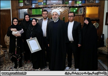 در این دیدار که حسین فریدون دستیار ارشد رییس جمهوری و حجت الاسلام و المسلمین شهیدی معاون رییس جمهوری در امور ایثارگران و رییس بنیاد شهید حضور داشتند، لوح تقدیری به رسم یادبود از سوی دکتر روحانی به خانواده این شهید تقدیم شد.