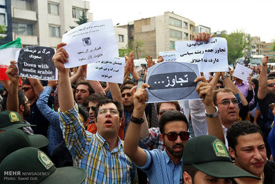 مردم مشهد عصر امروز شنبه در مقابل سرکنسولگری عربستان واقع در بولوار شهید دستغیب دست به تجمع زدند.