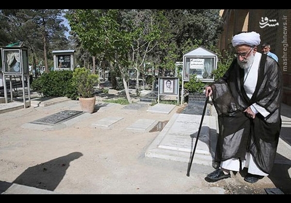 آیتالله جنتی دبیر شورای نگهبان، بر مزار همسر مرحومش صدیقه طاهری در بهشت زهرا(س) حضور یافت.