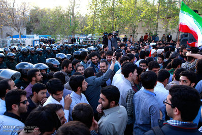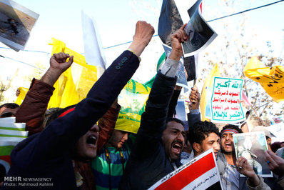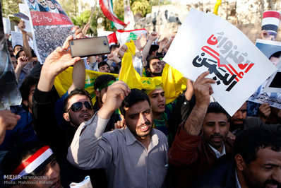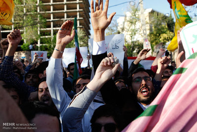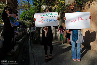 جمعی از دانشجویان عضو تشکلهای دانشجویی، عصر امروز دوشنبه در اعتراض به جنایات رژیم سعودی مقابل سفارت عربستان در تهران تجمع کردند .