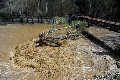 تصاویر/ طغیان رودخانه در محور چالوس
